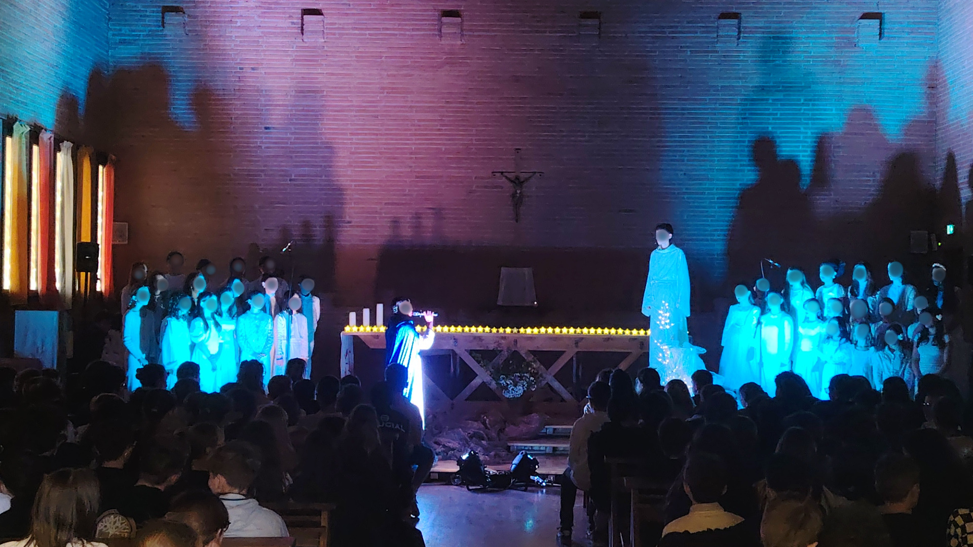 Nos élèves ont également animé un spectacle retraçant l'Annonciation, l'annonce à Joseph et la Visitation.